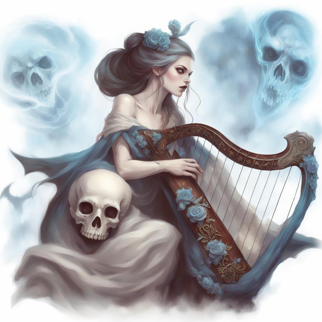 Back when the city of Nocturne was a lively jewel of the arts, one name soared above all others as the star of the stage. Emelina Mortimer, prized harpist and operatic singer, was set to become the next Maestra of the prestigious Cantus Audiatorum. Her voice had magical properties, enrapturing the souls of men and stirring the very depths of their beings. She stood above all others as a sorceress of melodies, a weaver of enchantments through the music that flowed from her lips.Yet, amidst the harmonious notes of her life, a discordant chord was struck. Emelina’s heart had fallen prey to a conman, looking to use her abilities to further his own goals. He loudly proclaimed his claim over Emelina, causing other nobles to become consumed by jealousy fueled by their own unrequited desires. She became beset at all sides by possessive once-fans and started to realize her love’s true nature.During one of her performances, as her voice soared through the grand theater, one such man emerged from the stage shadows. Using a skeletal dagger, he stabbed Emelina in front of a horrified crowd and then vanished. However, even as the songstress slipped away from the mortal coil, she continued to perform. Emelina’s swan song spiraled through the air, her dying melody laced with her grief, love, and indomitable will.The song reverberated throughout the theater, intertwining with the souls of all who bore witness. With her final breath, cursed magic infused the melody, and as the final echoes faded, hushed darkness descended on the crowd. Each left that night forever changed, yet the truth of such wouldn’t be revealed until they met their end. One by one, they would learn they were cursed and arise as Nocturned. But their plight is another story.Emelina’s funeral was held shortly after with a closed casket. The service was heavily attended, save for her conman lover. He was nowhere to be seen even as one of her obsessed fans threw open the casket to reveal the corpse was not inside. Only a ripped music page was inside, though which song wasn’t revealed to the public.The Siren, as she came to be known, was both the first Mortuoso and Nocturned. Over the decades, her haunting voice has been heard in graveyards and seen accompanied by two undead… her killer and the conman. Those curious and brave enough to approach her became her students. Through her connection with death and a lifetime of musical knowledge, she forged the Mortuoso. Her students, almost all Nocturned themselves, now spread her teachings by creating their own dark ensembles. While each differs in some regard, all carry the Siren’s blessing with them.
